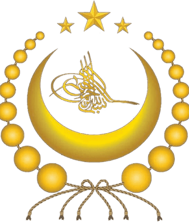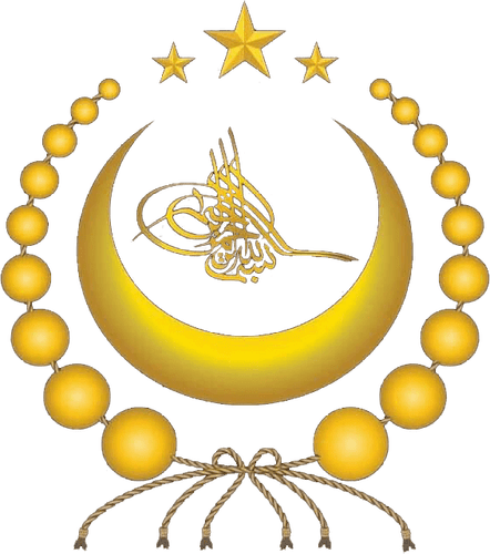 Nine beads on both the right and left of the crescent moon with the Bismillah Calligraphy inscribed in the middle of the crescent. Three stars above the mouth of the crescent with a cord tying the beads together with a knot at the bottom flowing into six branches. The eighteen points represent the 18 Turkic tribes living in East Turkistan, while the three stars symbolize the Köktürk, Uyghur, and Qarakhanid States that were previously founded in East Turkistan.